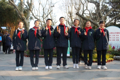 两个中队七位同学:楼怡婷,林国荣,陈矜好,袁馨语,郑涵,张楠,赵怡涵,来到世界遗产——西湖,开展“以烟换糖”,既是倡导公共场所不吸烟的文明习惯,也是迎亚运树新风,助力打造无烟亚运,希望通过活动宣传,能让杭州市民在世界友人面前表现出更高的素养。